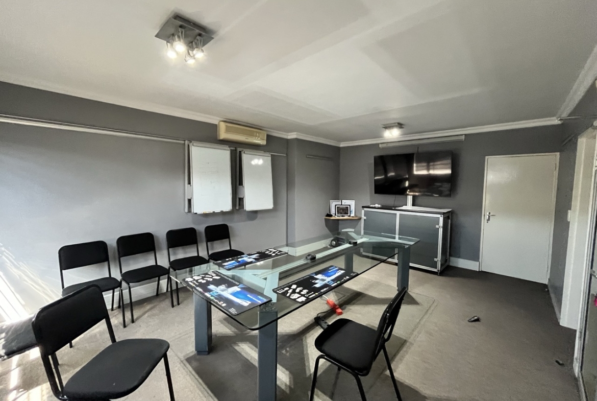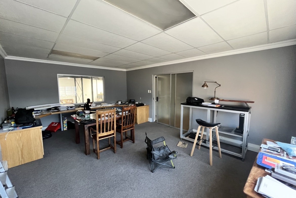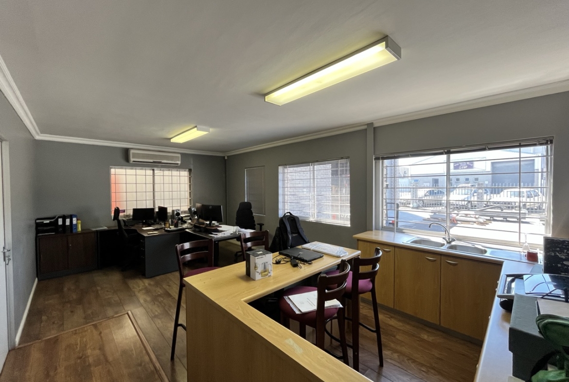 The warehouse component is ideal for storage and distribution, featuring three roller shutter doors for efficient loading and offloading. The property includes ample office space with a boardroom, kitchenette, and well-appointed administrative areas, making it suitable for a range of business operations.